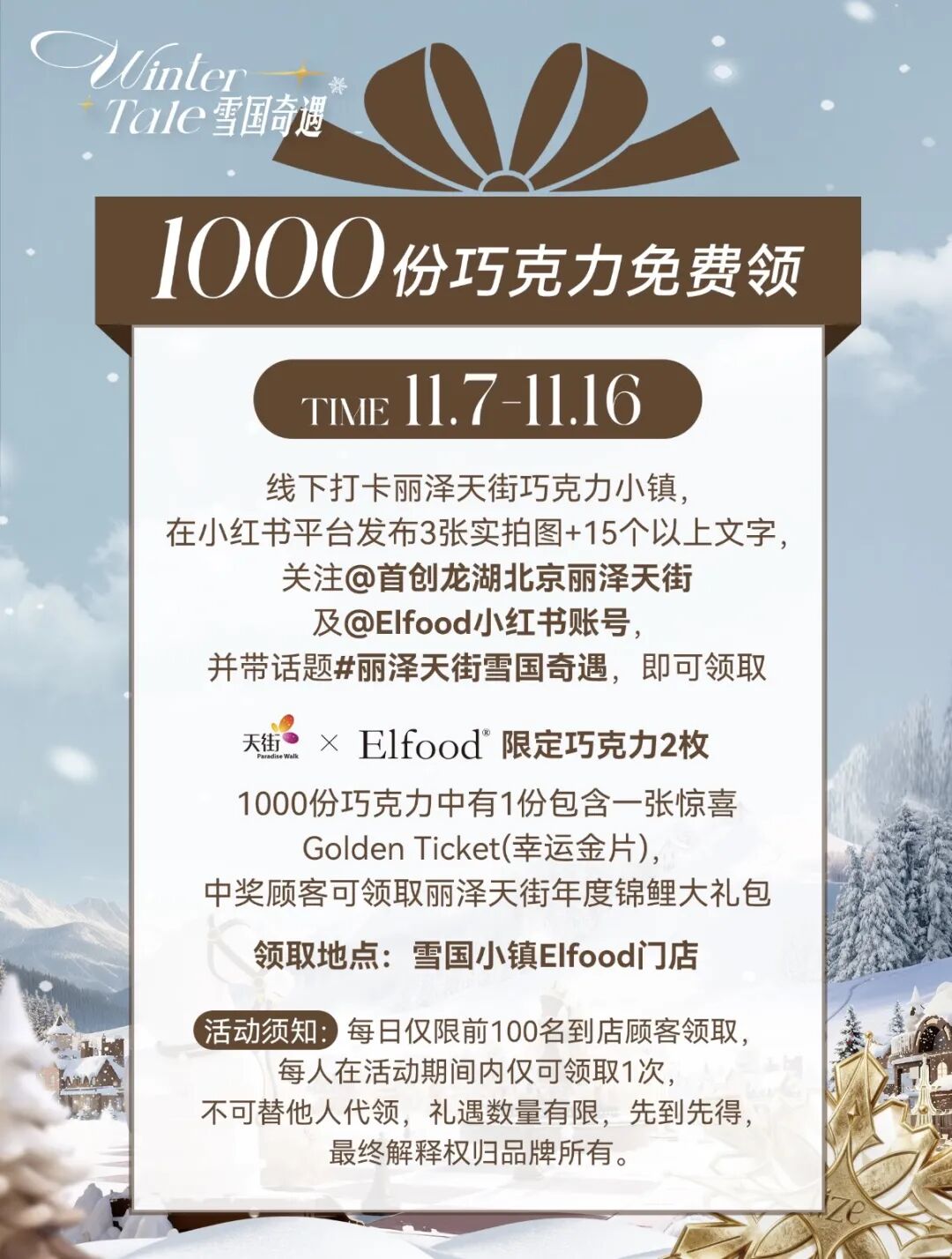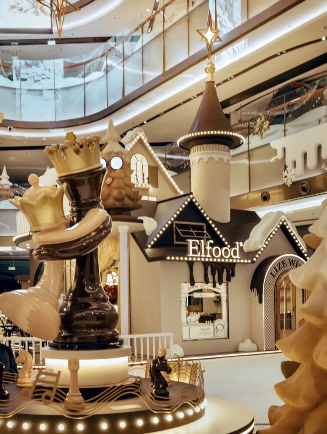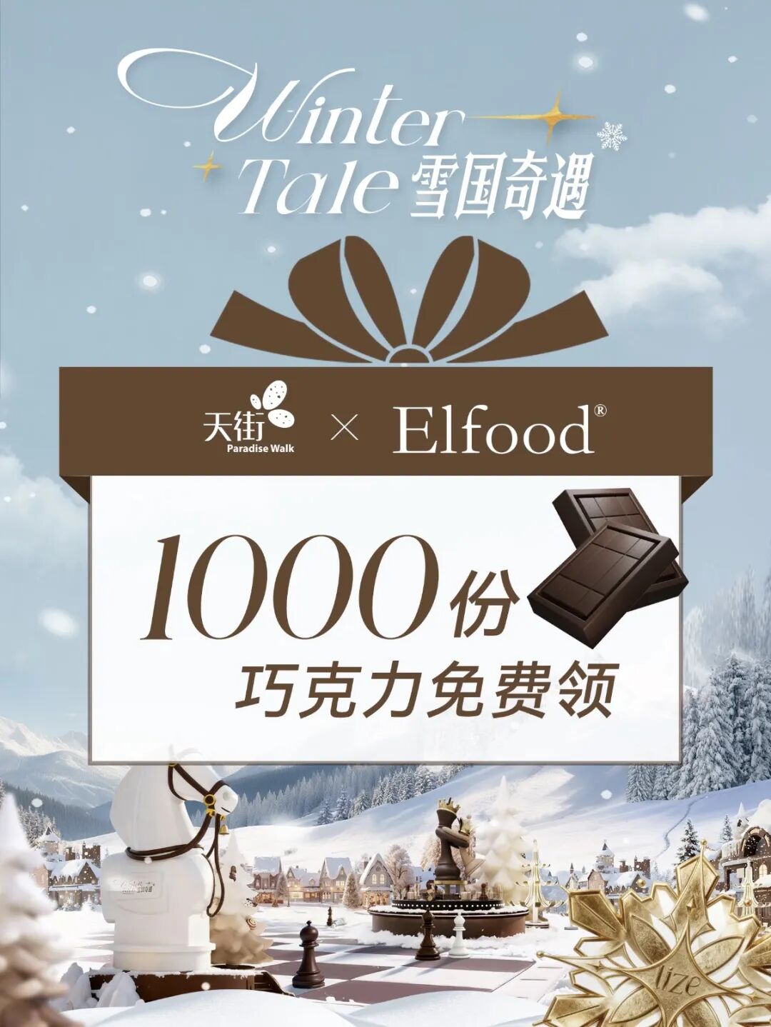 巧克力小镇启幕,可可雪松林/雪中小屋/巨型骑士/精灵八音盒,限定快闪首发登陆,东黎羊绒/Elfood、寓义/PIGGYOO。