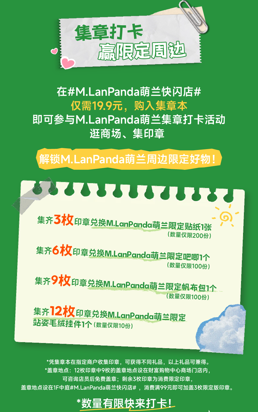 在# M.LanPanda萌兰快闪店#购入集章本,还可参与M.LanPanda萌兰集章打卡活动,逛商场、集印章,解锁M.LanPanda萌兰周边限定好物!