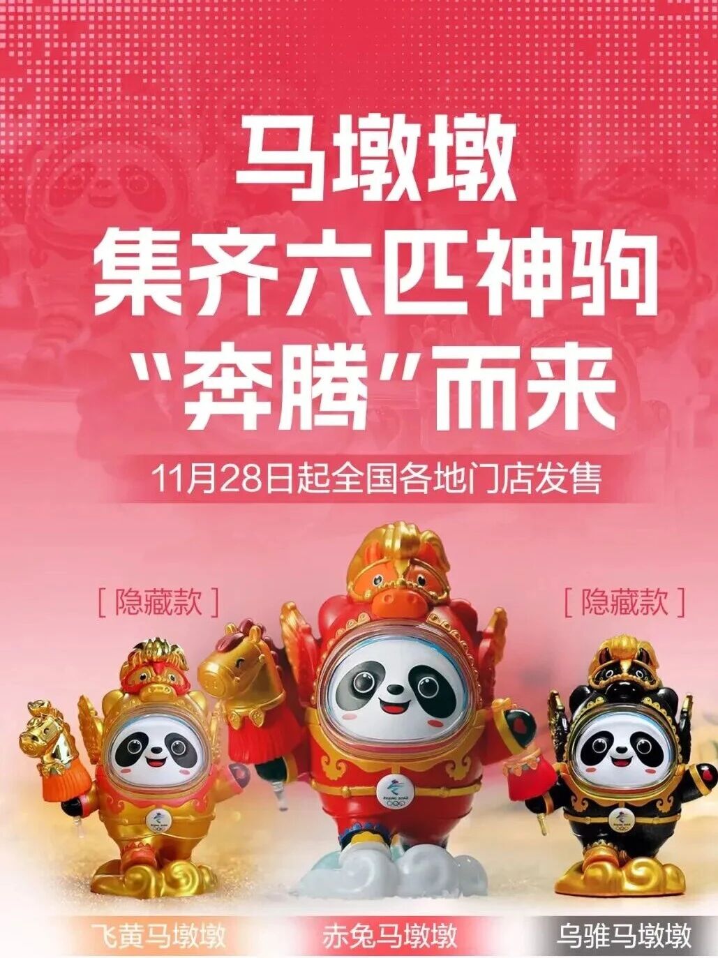 顶流回归!“冰墩墩”变身“马墩墩”!消费者可在线上购物平台的“奥林匹克官方旗舰店”预购马墩墩系列产品。11月28日,马墩墩系列产品将在全国各地门店正式发售,消费者可以在“北京礼物”鸟巢(双奥主题)店、北京奥运博物馆、王府井工美大厦、北京奥园city街等渠道购买。北京电视台春晚联名款“马墩墩马到成功摆件”也将在2025年底限量发售。