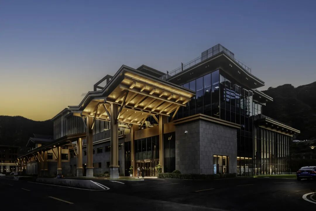 酒店坐落于佛子庄乡大石河畔,距京昆高速出口30分钟、北京市中心60分钟车程,交通便捷却藏着避世静谧。18栋建筑依山而建,推窗就是漫山绿意,晨起听鸟鸣、入夜观繁星,让都市人瞬间逃离喧嚣。