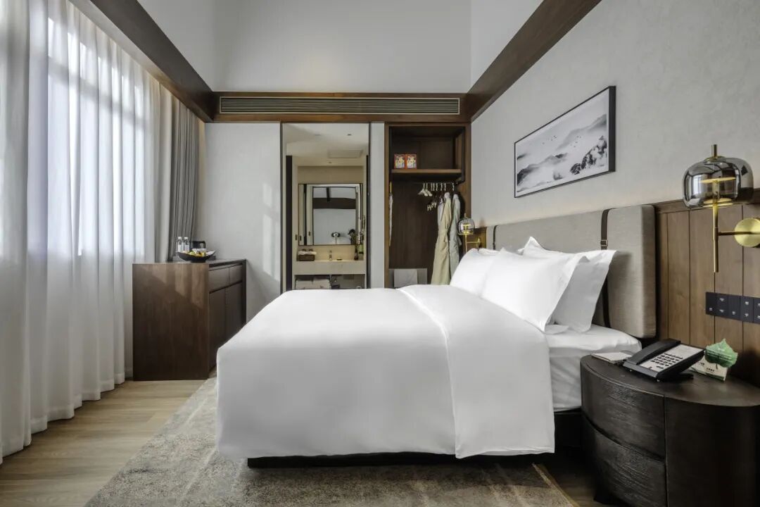 300间多元客房藏着自然惊喜,除研学房外均自带汤泉泡池,或临露台、或藏庭院。云朵般柔软的床品、智能卫浴设备、免费迷你吧与高速Wi-Fi,将舒适与格调拉满,晨起泡汤赏晨雾,入夜围池观星海,每一刻都是与自然的温柔相拥。