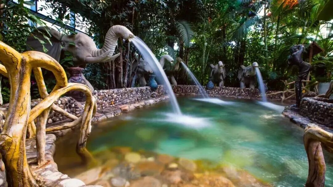 这里的温泉水取自地下3800米深的侏罗纪白云岩矿泉水,富含有益矿物质,室内外共60余种特色温泉浴,涵盖休闲养生区、水疗健身区、山景温泉区,动感泳池区等多个主题区域,满足不同游客的需求。