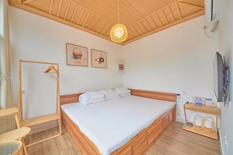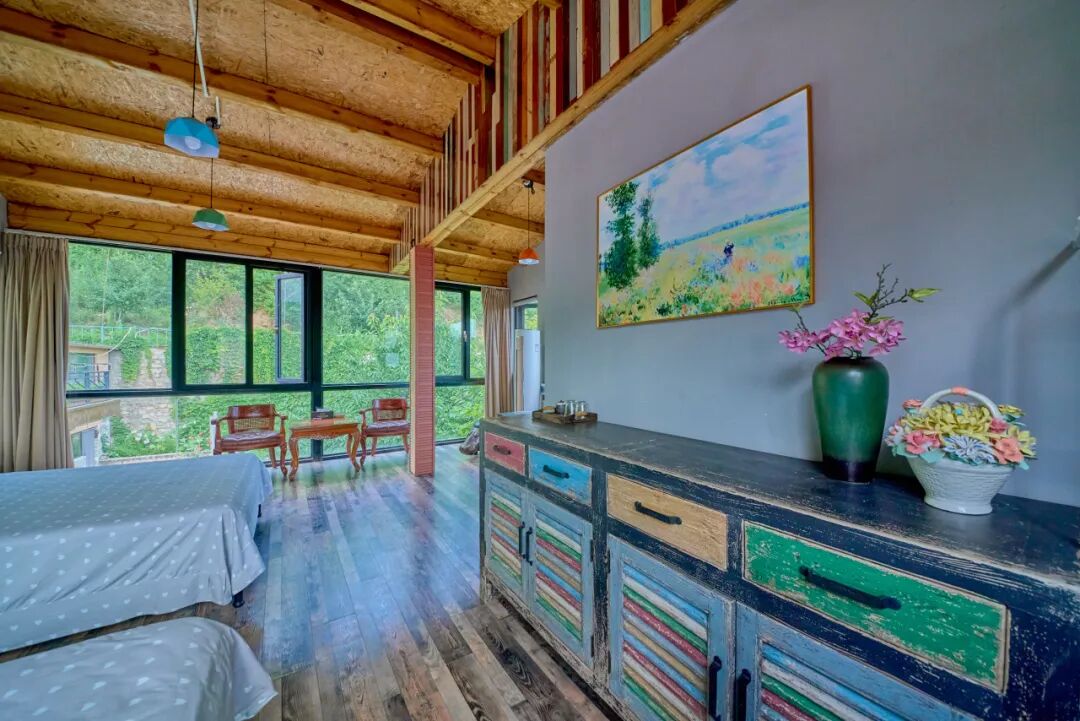 傍晚时分,入住周边的特色民宿,不少民宿选址在山野间,推窗就能望见层叠的秋林与远处的山影,夜晚,躺在柔软的床上听着山间的虫鸣与微风声入眠。