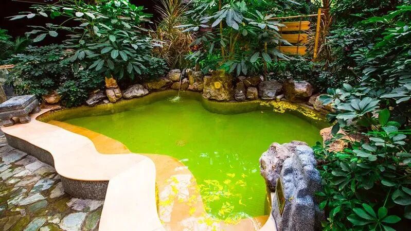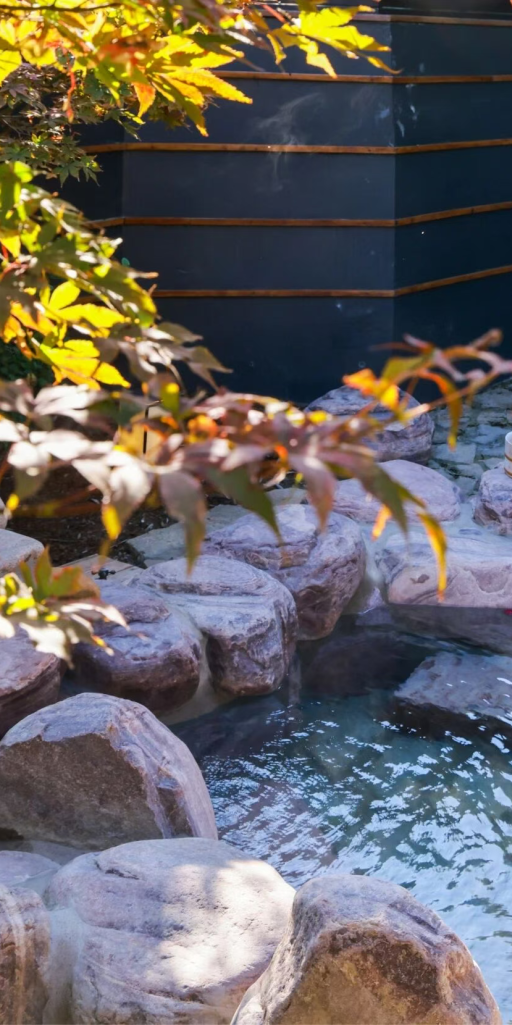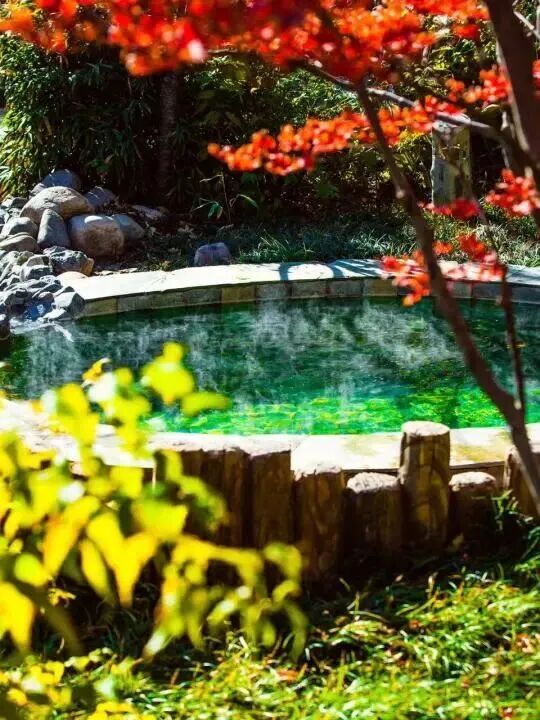 而这里的汤泉,更是将“隐于山林”的意境发挥到极致,汤池散布在山林间,有的被茂密的树木环绕,私密性十足,有的视野开阔,能将山间秋景尽收眼底,泡在温热的泉水中,感受着秋风带来的丝丝凉意,闻着空气中的草木清香,所有的疲惫都能瞬间消散。