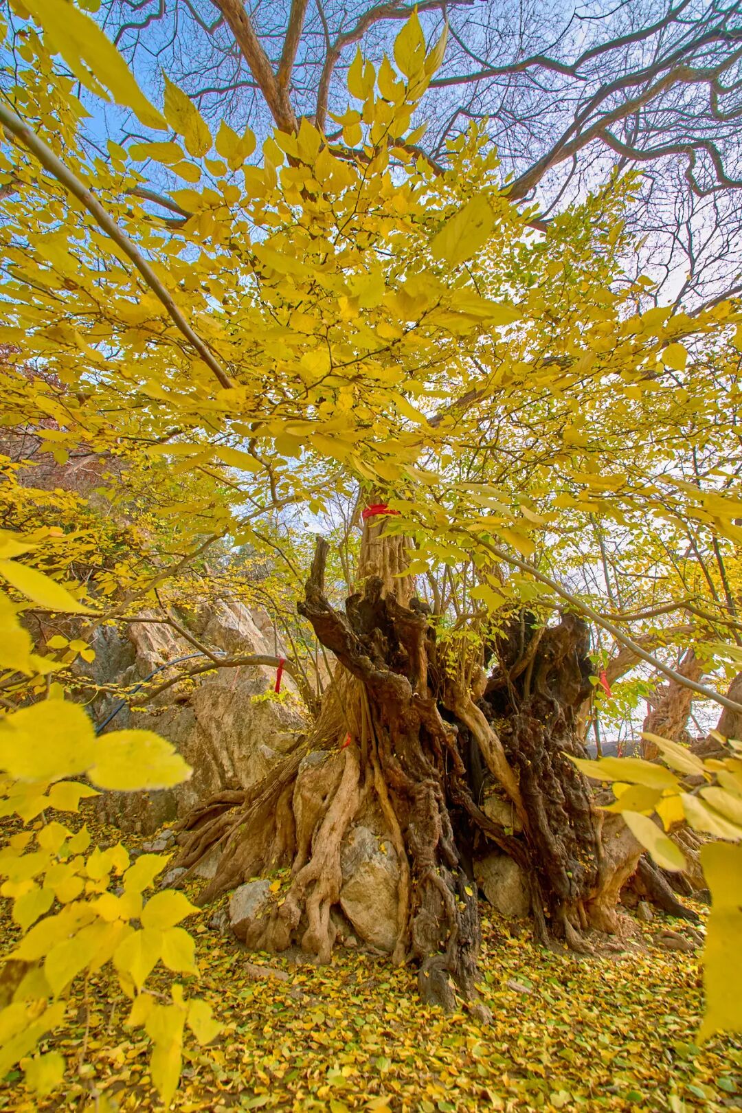 南口镇藏着昌平最动人的秋日古树秘境,从3000年树龄的古青檀到400余年的古银杏,每一棵古树都是时光的“活化石”,这条自驾游线串联五大古村落,集齐“古树寻幽+田园体验+轻松血拼”三重乐趣,堪称秋日出行的宝藏之选,在檀峪村的青檀主题公园里,3000年树龄的古青檀十分震撼,粗壮根系像龙爪般紧紧嵌在岩石里,与山石相融成天然奇景,周围几株小青檀环绕,形成温馨的“母子树”景观。秋日暖阳下,青檀叶被染成温暖的金黄,站在洒满斑驳光影的树下拍照,出片尽显与岁月对话的厚重。