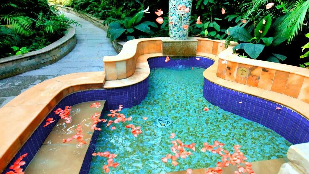 乐多港万豪酒店里藏着6500余平方米的温泉“汤乐宫”,它以原生态造园为设计理念,内设21个不同主题汤池,涵盖亲子戏水池、草本养生池,满足多样放松需求。