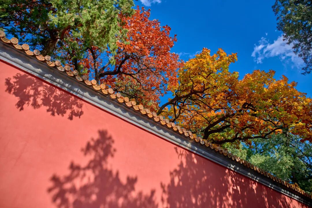 深秋的明十三陵,藏着历史与秋景交融的浪漫,红墙黄瓦的宫殿外,古树枝叶交织成天然穹庐,阳光透过叶隙洒下斑驳光影,绚烂的红叶如火焰般环绕,若登高远眺,更能看见,漫山红叶与帝陵相连的壮阔,随手按下快门,每一张都是兼具历史厚重感与秋日诗意的美照。