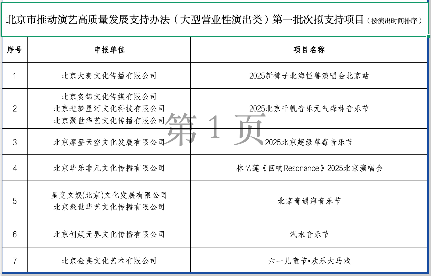 为推进演艺之都建设,根据《北京市推动演艺高质量发展支持办法》,近期已组织开展第一批次大型营业性演出类项目征集、审计工作,现将2025年第一批次拟支持项目予以公示。公示期为11月3日-11月7日,期间如有异议,请向北京市文化和旅游局反映并提供相关材料。