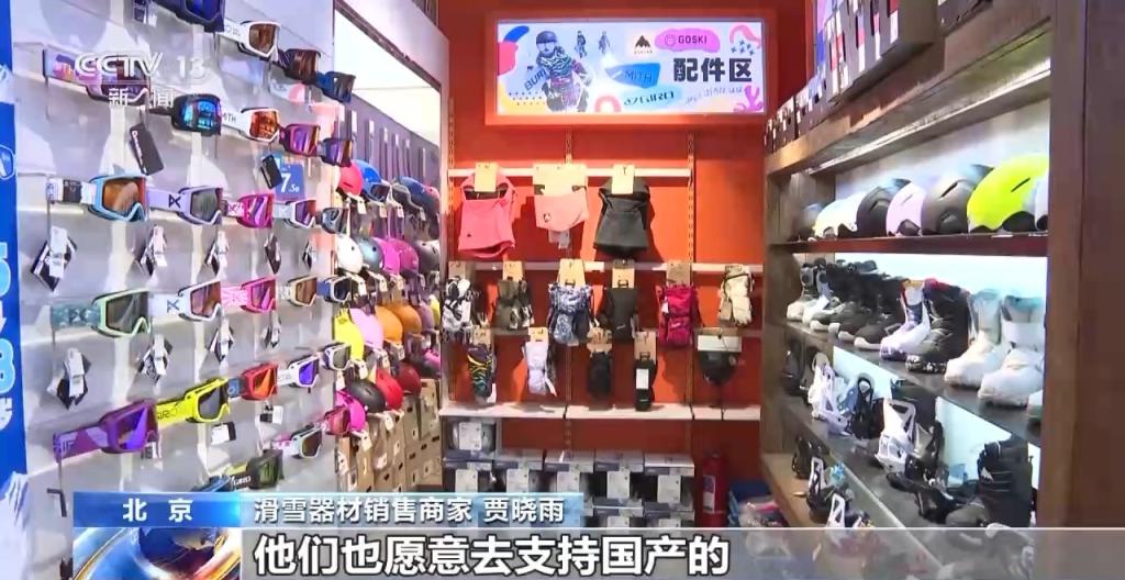 滑雪器材销售商家 贾晓雨:这个雪具城里,大部分的雪具都是国产的,而且很多客户也愿意支持国产的。我们今年收到了很多国外顾客的来访,愿意批发到国外去,有时候是供不应求的状态。