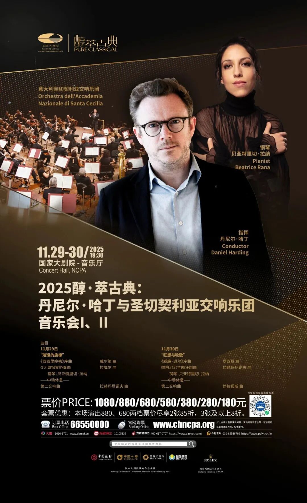 11月29日至30日,著名指挥家丹尼尔·哈丁将执棒拥有百年历史的意大利交响名团——圣切契利亚交响乐团,携手炙手可热的意大利明星钢琴家贝亚特里切·拉纳重磅亮相国家大剧院“2025醇·萃古典”系列音乐会,以威尔第、罗西尼、拉威尔、拉赫玛尼诺夫、勃拉姆斯等作曲家的传世篇章,为观众带来两场不容错过的听觉盛宴。