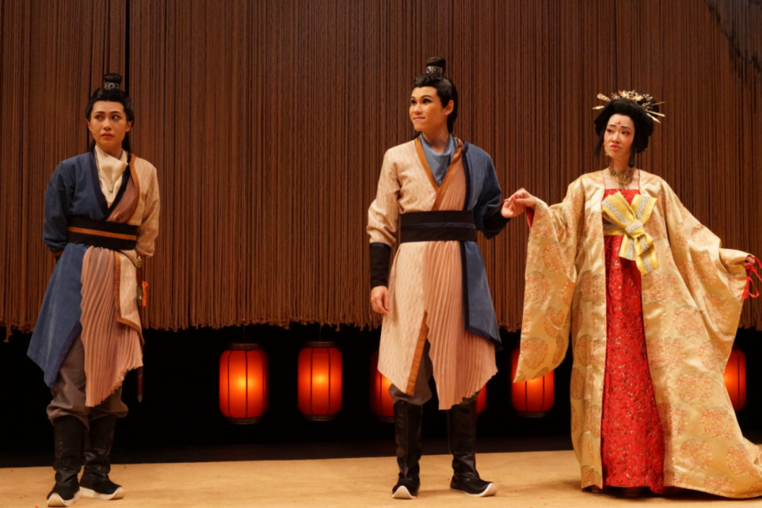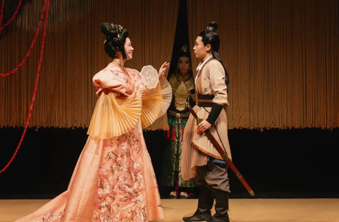 这出戏的“好看”与“好听”,同样用心。舞台设计不以复原唐代为目的,而以写意笔法勾勒岭南的开放与元宵的绚烂,让空间本身参与叙事。服装的纹样色彩中暗藏玄机,一针一线,皆在诉说人物的身份与心境。现场演奏的古筝、笛子与笙,绝非点缀,而是情感的延伸——乐师与演员气息相通。“若然音乐正是情爱食粮,且奏莫停……”陈钧润先生的译笔,让莎翁诗篇在粤语的雅俗之间重生,也为这段啼笑因缘埋下传奇底色。