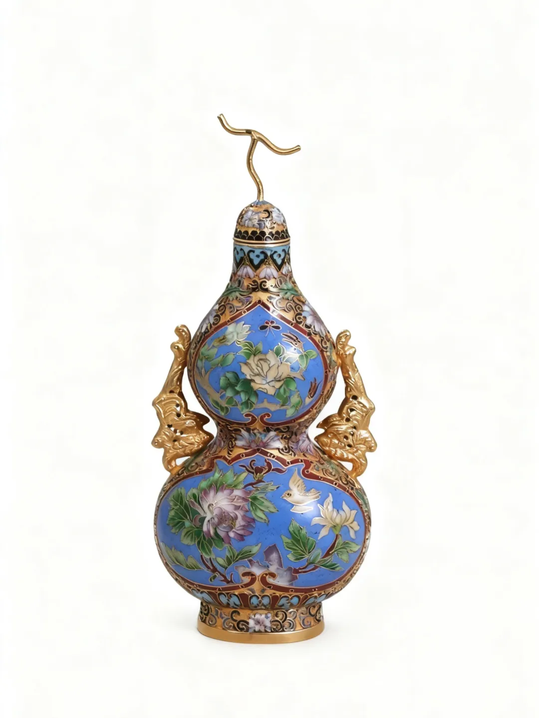 “铜胎掐丝珐琅”俗称景泰蓝,是一种通过制胎、掐丝,然后经过点蓝、烧蓝、磨光、镀金等工艺形成的一种传统金属工艺作品。由于使用了铜、金等贵金属材料,加之多种矿物釉料的煅烧,达到了出窑万彩的绚丽艺术效果。掐丝珐琅工艺大约在13世纪传入中国,经过明清两代融合发展,取得了极高的艺术成就,也在世界范围内产生了广泛的影响。