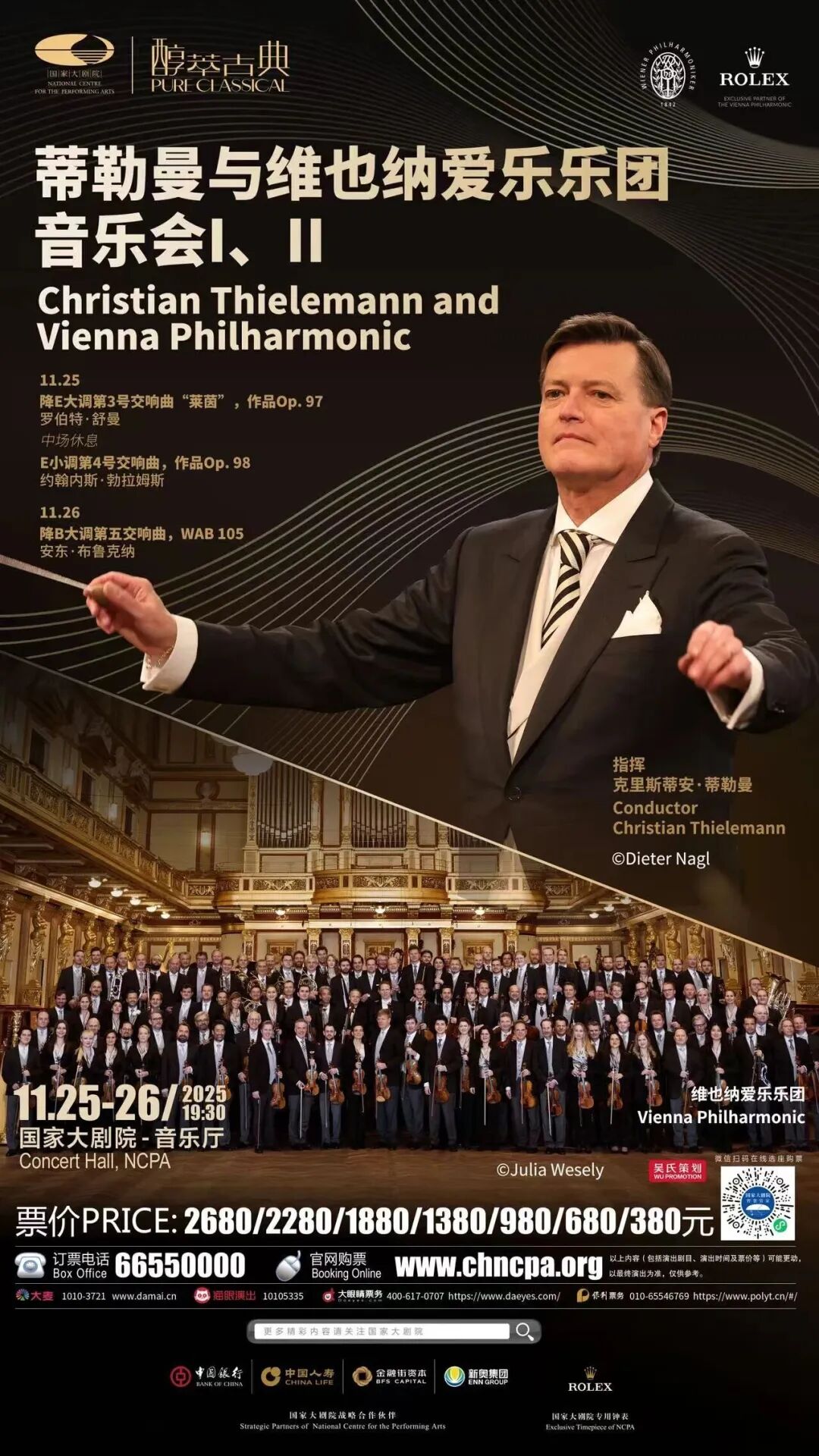 维也纳爱乐乐团那独一无二、无法复制的“维也纳音色”——圆润的木管、辉煌而不刺耳的铜管、如丝绒般温暖的弦乐——正是演绎这些德奥经典理想的载体。他们将如何用这传承百年的声音,重现舒曼笔下莱茵河的波光与科隆大教堂的庄严?