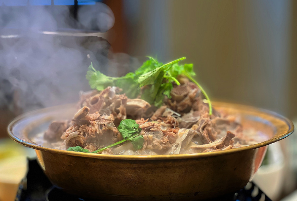 果木炭烤北京烤鸭外酥里嫩,搭配薄饼与甜面酱层次丰富;铜锅涮肉以清汤凸显羊肉鲜滑,蘸麻酱暖身暖心。