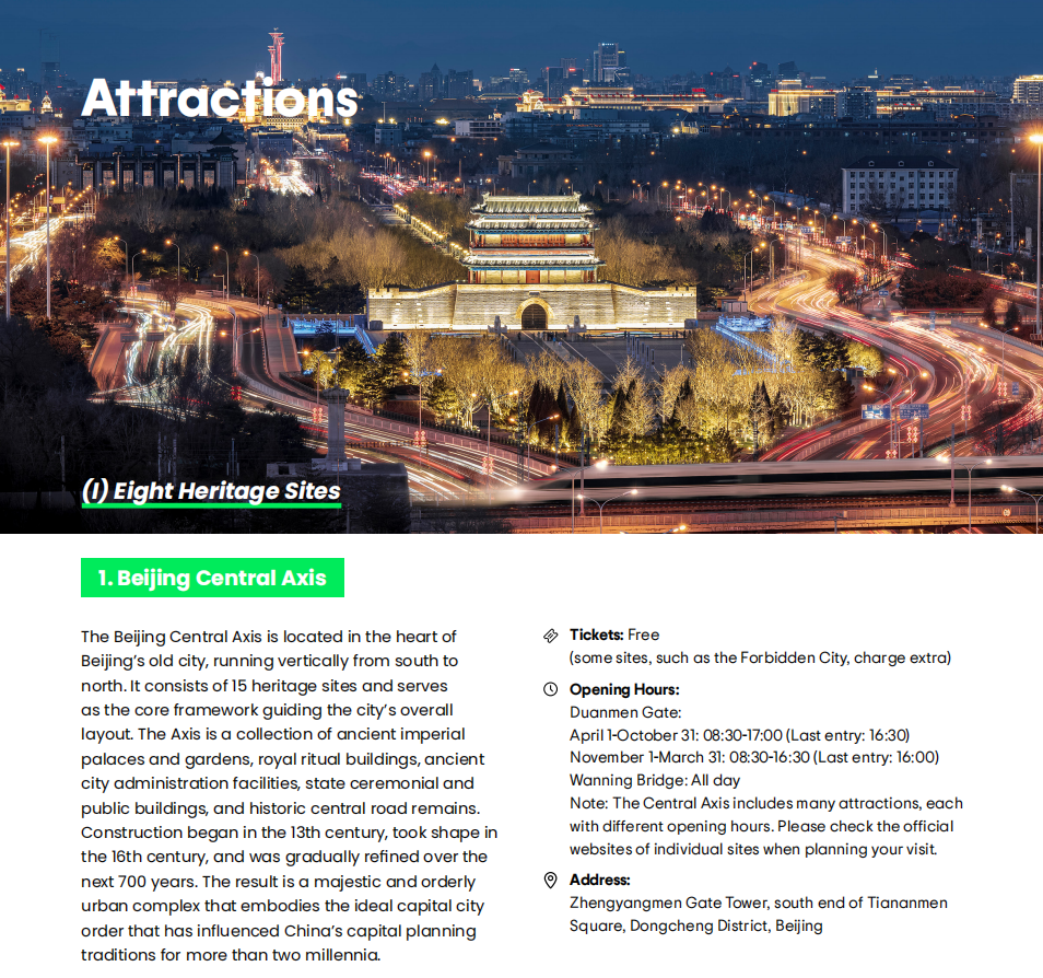 由北京市文化和旅游局与携程集团联合打造的全英文版《北京入境游指南》,正式登陆Tripadvisor猫途鹰国际平台!这份指南涵盖北京吃住行游购娱全维度攻略,从千年古迹到潮流地标,从京味美食到便利政策,为全球游客提供清晰指引——期待你走进这座 “古今交融的国际都市”,开启专属北京记忆!