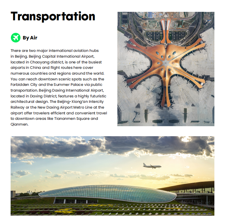 北京首都国际机场(朝阳区,全球航线枢纽,可便捷前往故宫、颐和园等地标景区);