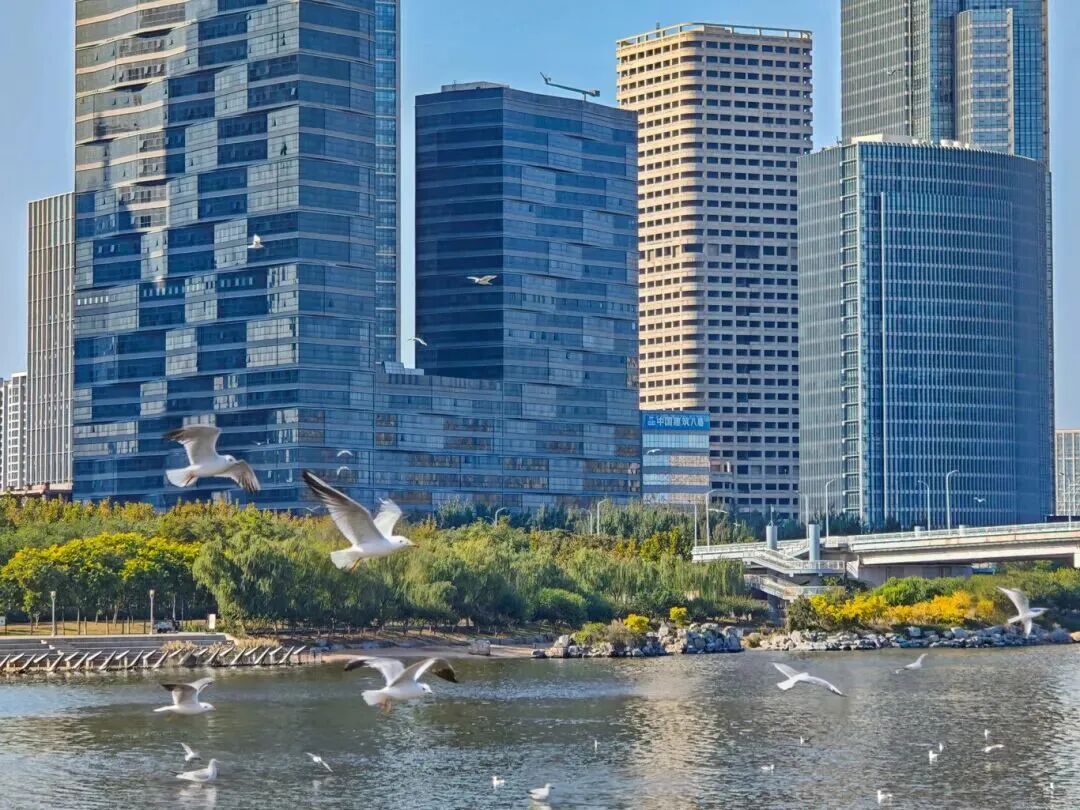 走进于家堡滨河公园,眼前尽是一片惬意景象,“冬日精灵”们如约而至,不远万里,来到海河之上,和特意来打卡的游客,撞个满怀。抬头是飘着白云的蓝天,迎面是轻拂而过的秋风,海鸥舒展翅膀,在河面上方自在翱翔。