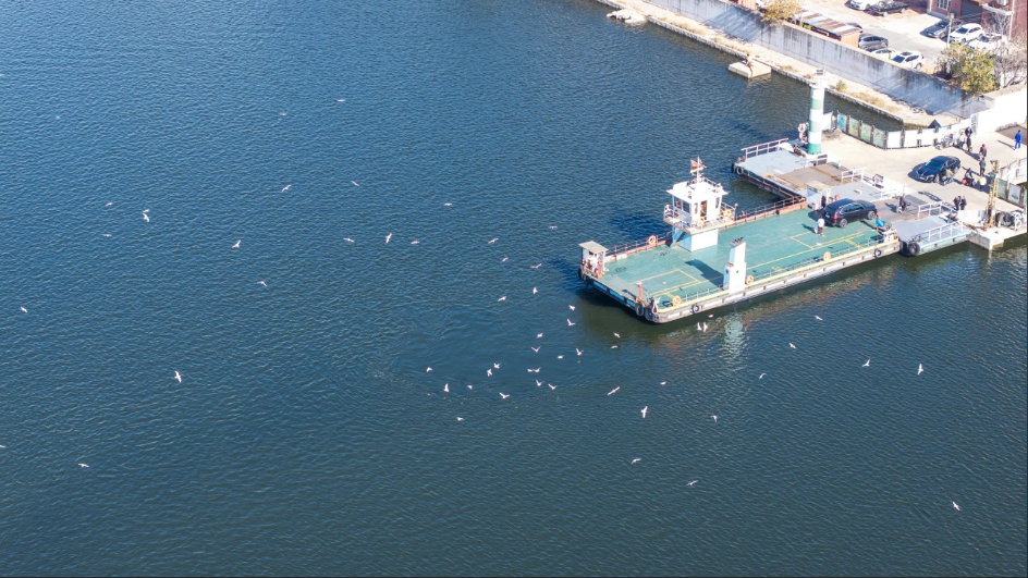 渡口两岸保留着上世纪的建筑,复古又浪漫,在摆渡的五分钟中全程高能,海鸥、摆渡、碧水、蓝天,简直是天作之合,拿着老式面包或者油酥烧饼,挥挥手就引来数只海鸥。