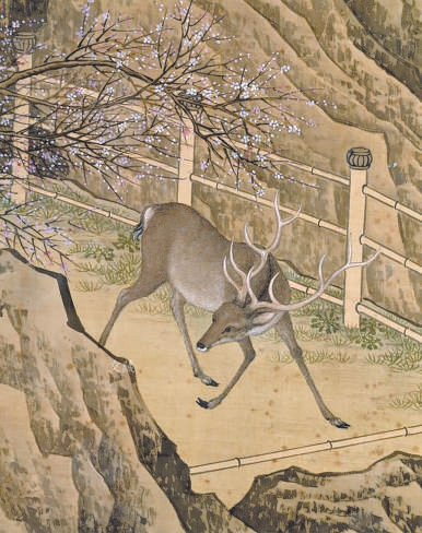 许多学者认为1978年出土于湖北江陵楚国墓葬中的“镇墓兽”头上角系麋鹿角,侧面反映了麋鹿在中原之外的楚国同样具有特殊文化地位。汉代上林苑延续商周传统,《三辅黄图》记载“苑中养百兽,天子秋冬射猎取之”,麋鹿为主要狩猎对象之一。《西京杂记》提到茂陵富民袁广汉私园豢养麋鹿,后被朝廷收归上林苑。而至汉末,野生麋鹿在气候变化与过度捕猎的共同影响下数量锐减,仅在长江中下游还有一定数量。魏晋南北朝时期,因麋鹿稀缺,麋鹿尾毛制成的“麈尾”成为名士清谈的象征物。明清时期,麋鹿数量复苏,在皇家猎苑中进行集中圈养,明代永乐年间扩建南海子皇家猎苑,设“海户”千人专职管理,形成“以苑养鹿”的封闭体系,并严禁民间捕猎。清代延续明代制度,乾隆时期南海子麋鹿数量达两三百头,成为全球唯一麋鹿圈养种群。