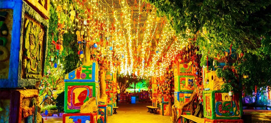 泡泡街内有诸多特色IP店铺、构筑物及互动装置,包括MOLLY、LABUBU、DIMOO、SKULLPANDA和PUCKY等身影,泡泡街的尽头就是森林区主入口,奇遇森林定位一个充满奇幻的神秘世界,THE MONSTERS家族生活在其中。