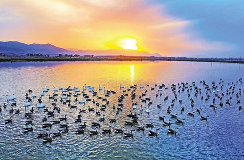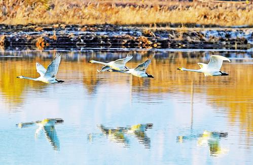 作为京津冀地区重要的生态屏障和候鸟迁徙通道,如今的官厅水库已变身“天鹅湖”。近年来,怀来县持续推进生态治理,让这里成为候鸟的“安心家园”。在保护候鸟的过程中,当地还注重发挥群众的作用,通过村广播、宣传栏等方式普及护鸟知识,引导群众参与生态保护。“现在村民们护鸟意识越来越强,发现受伤候鸟会第一时间联系我们,还会主动劝阻不文明观鸟行为。”刘晓霞介绍,上个月村民发现一只翅膀受伤的天鹅,及时送医救治,如今它已康复重返蓝天。