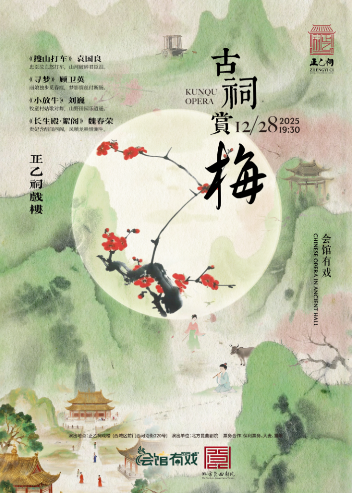 本次演出特邀四位中国戏剧表演艺术顶尖荣誉“梅花奖”得主——袁国良、顾卫英、刘巍、魏春荣,联袂呈现四出风格迥异、意蕴深厚的经典昆曲折子戏,于这座京城巧夺天工的纯木古戏楼中,邀您共赏“梅”之百态,聆听穿越时空的雅韵清音。
