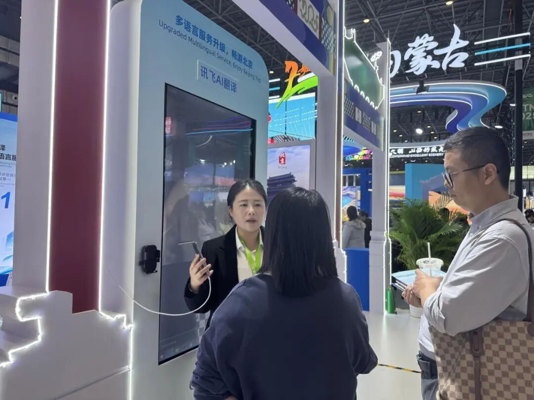 在北京展区元萝卜AI下棋机器人成为吸睛展位。下棋机器人,以萌趣灵动的造型和四大棋类的丰富玩法圈粉无数,现场观众围聚台前和机器人“过招”,沉浸式体验科技与棋艺碰撞的乐趣。针对入境游客最关心的语言沟通问题,科大讯飞带来的多语种AI翻译机给出了完美解决方案,现场观众直观感受到“无障碍交流”的便捷。