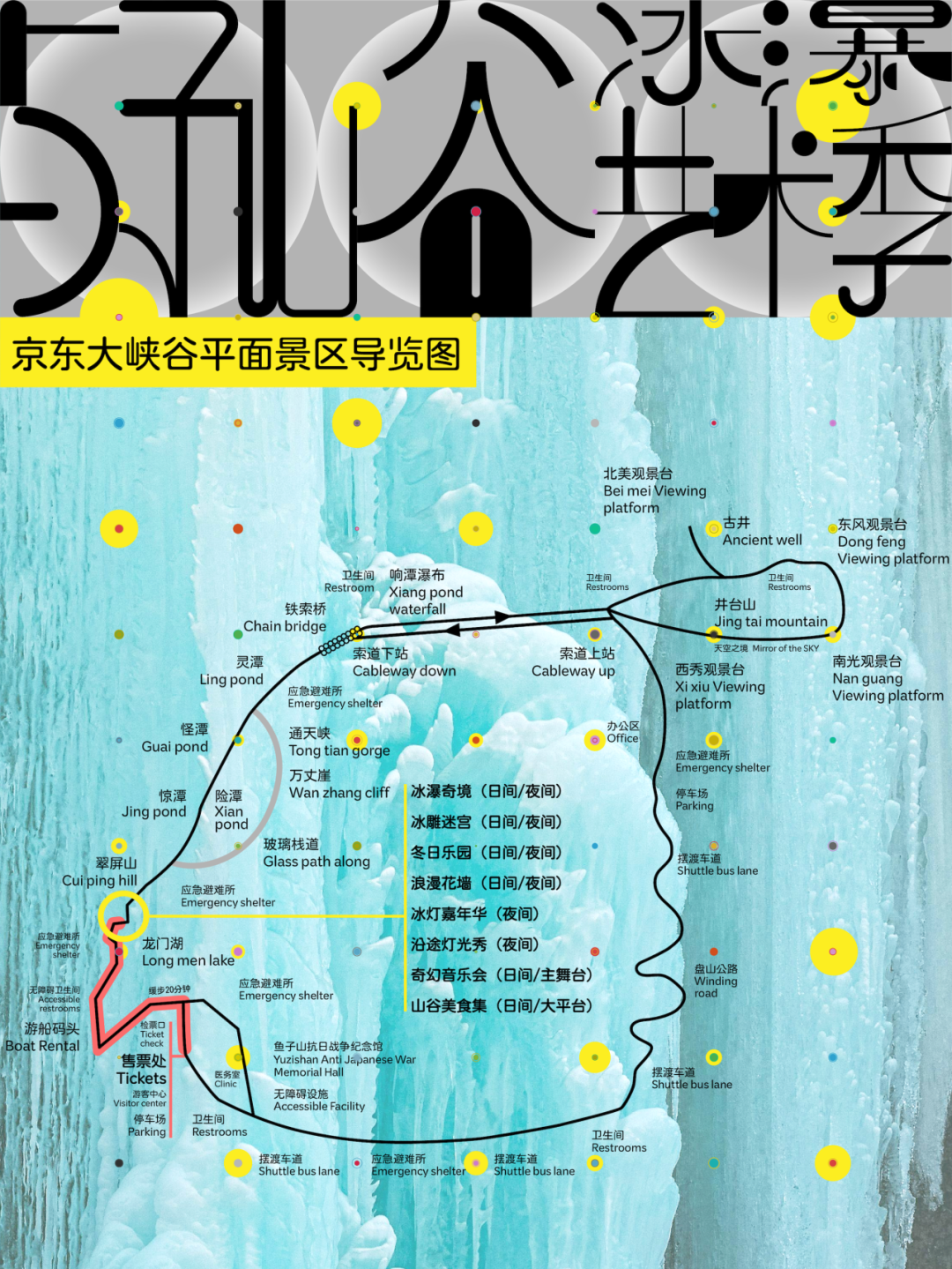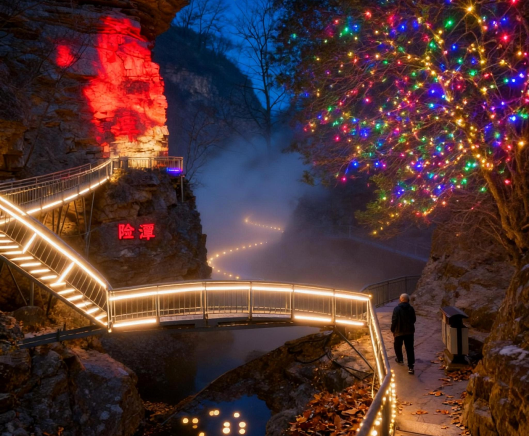 以整座山谷为画卷,灯光流泻于晶莹冰面,恍若星辰坠落人间。这不仅是一场视觉盛宴,更是一次步入光影童话的温柔邀约。