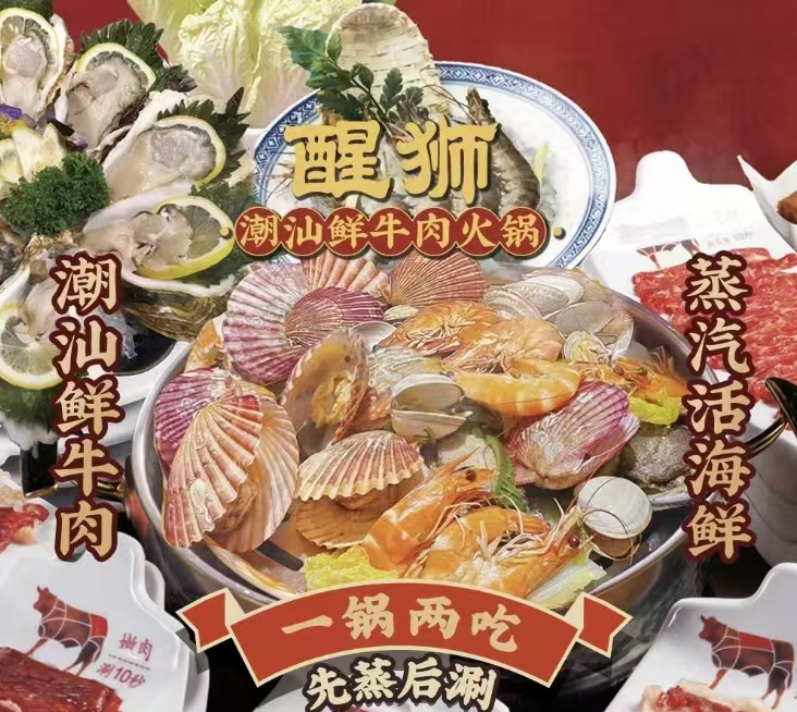 醒狮火锅开创了潮汕鲜牛肉火锅和蒸汽活海鲜一锅两吃,先蒸后涮的吃法,餐厅环境优雅舒适,服务热情,此次凭演唱会票根,到店可享整单九折优惠。