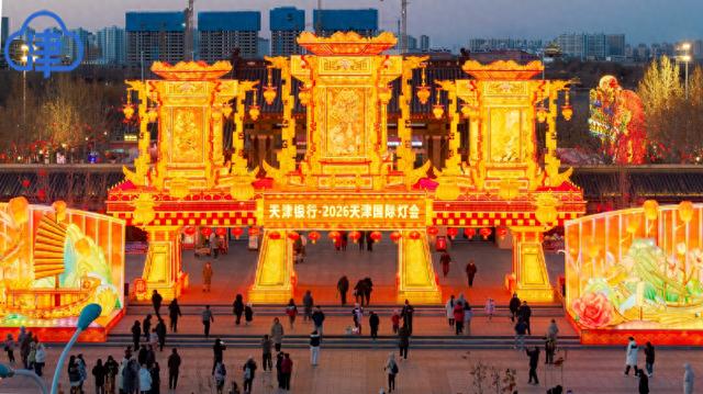 夜幕低垂,华灯初上,水西公园内更流光溢彩、人声鼎沸。12月20日晚,随着湖边主舞台灯光亮起,2026年天津国际灯会正式启幕。