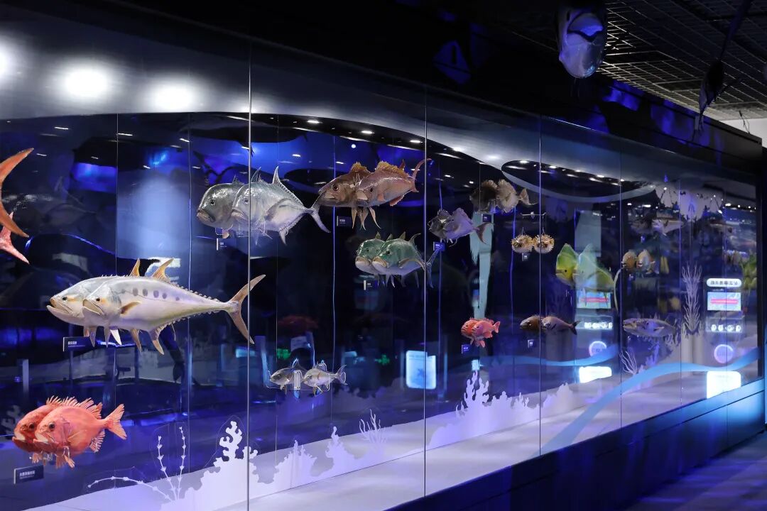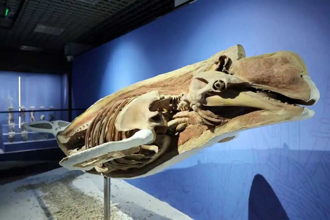 步入展厅,你首先遇见的会是本次的明星展品——体长超15米的大翅鲸标本。大翅鲸在世界各大洋均有分布,尤以南极水域较多,在我国分布于黄海、东海、南海海域。它跃出水面时激起的水花声,数公里外依然清晰可闻。更神奇的是,雄性大翅鲸每年有近半年时间终日歌唱,其歌声节奏竟与西方交响乐有着奇妙的相似。