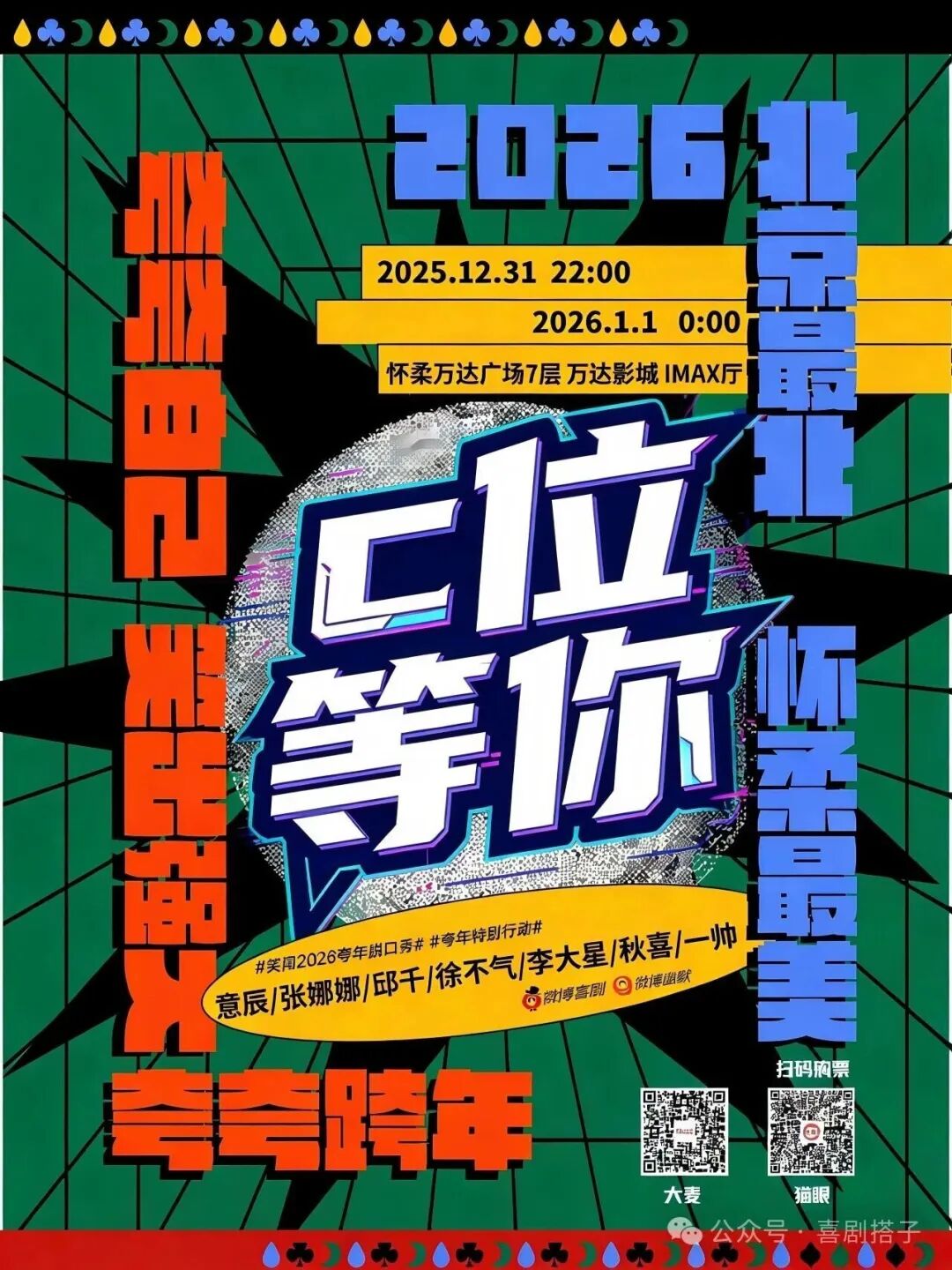 12月31日22:00,怀柔区元旦跨年重点文化活动,“笑闯2026·怀柔夸年脱口秀”,给你的跨年夜一个能量满满的“开机仪式”!
