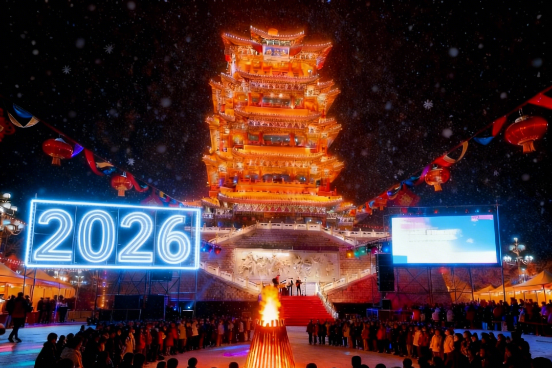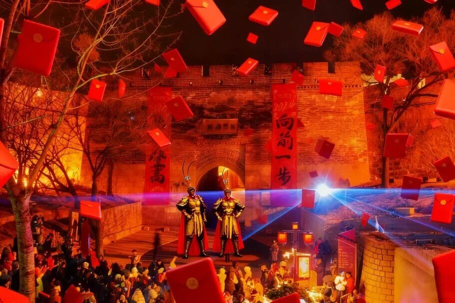 主舞台还将有电音演出,结合民族乐器,让音乐既有节奏感,也充满古典韵味。零点的倒计时,电子烟花在千年城关绽放星瀑,两米高的机甲悟空惊喜现身,红包雨裹着祝福来袭,在众人欢呼声中共迎新一年!
