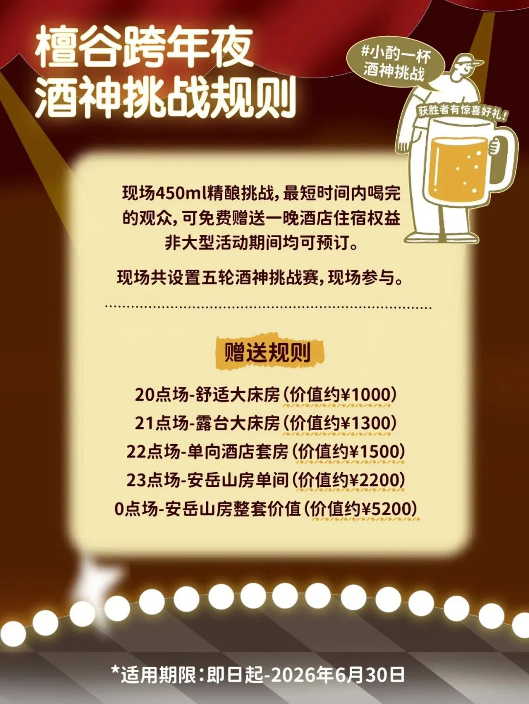 也可以在演出区的精酿吧台,参与「山谷酒神挑战」,获胜者最高可享价值5200元住宿权益!