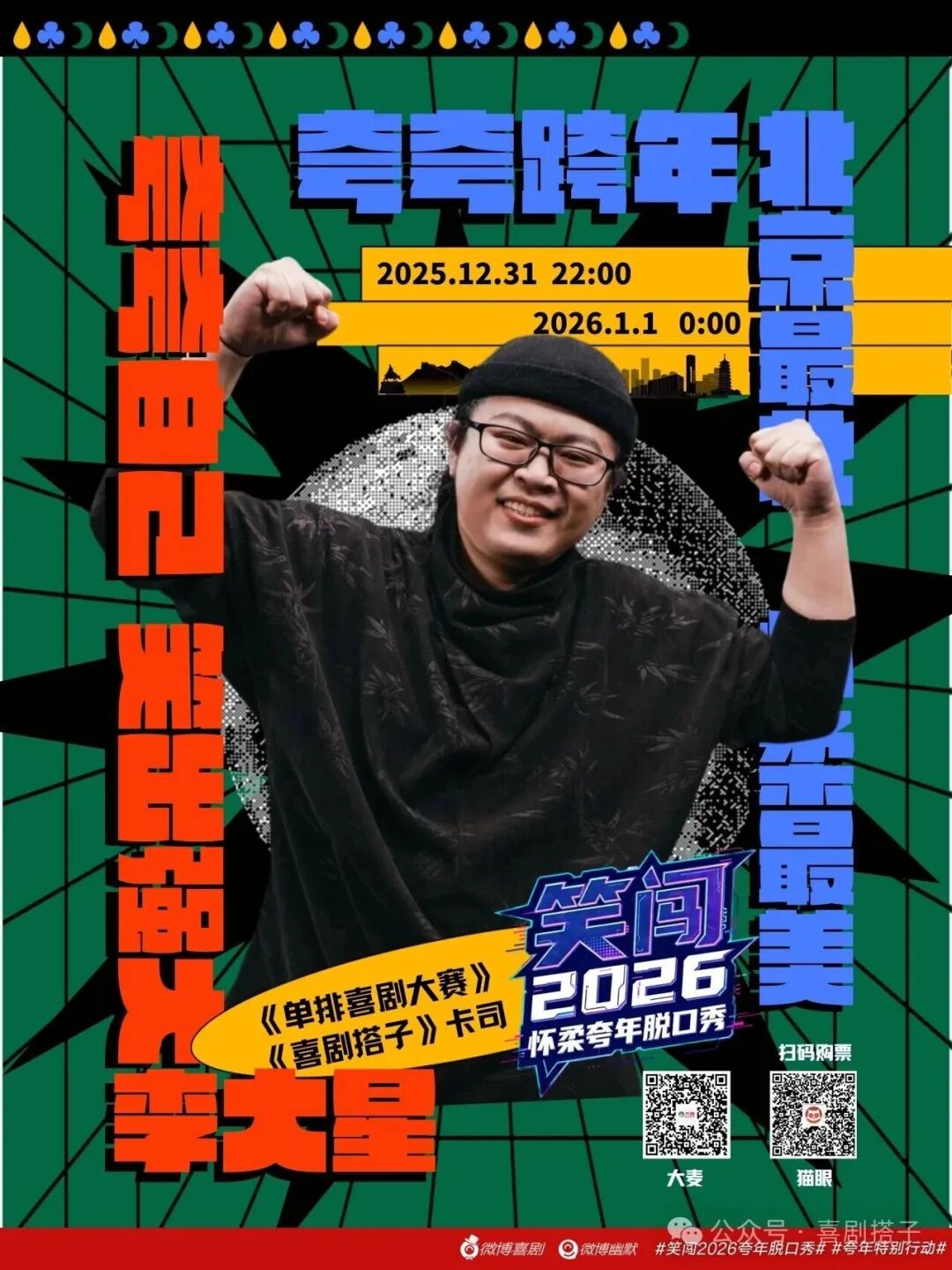 本次演出集结了来自《喜剧搭子》《单排喜剧大赛》《一年一度喜剧大赛》等多档喜剧综艺的实力卡司,从综艺熟脸到跨界黑马,笑点密集输出,快乐直接拉满!
