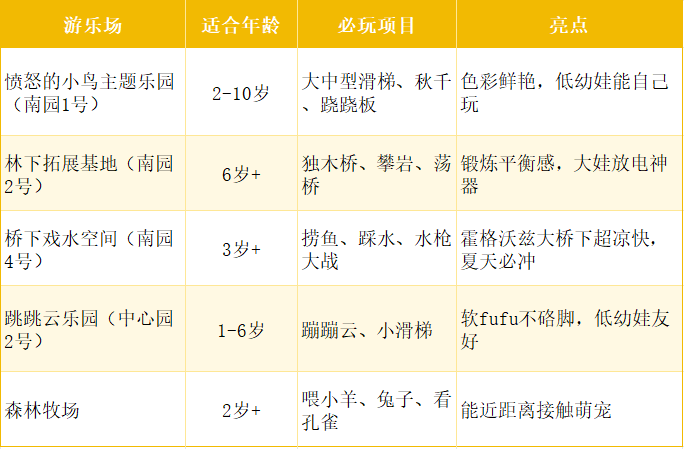 亲子配套:10处游乐场(愤怒的小鸟主题/跳跳云等)、森林牧场、蟹宝王国;