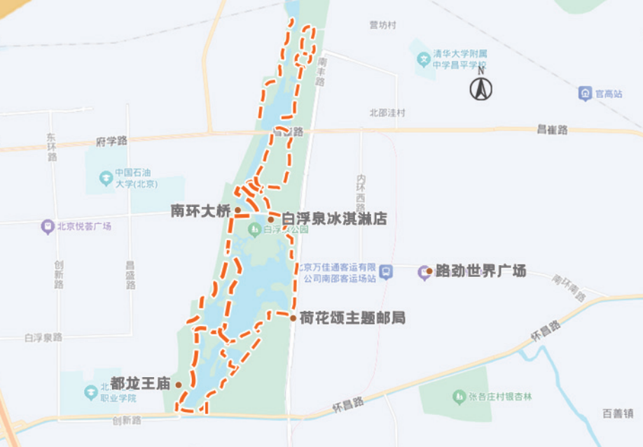 文化地标:白浮泉遗址-九龙池、都龙王庙、“霍格沃兹大桥”(南环大桥)、荷花颂主题邮局;
