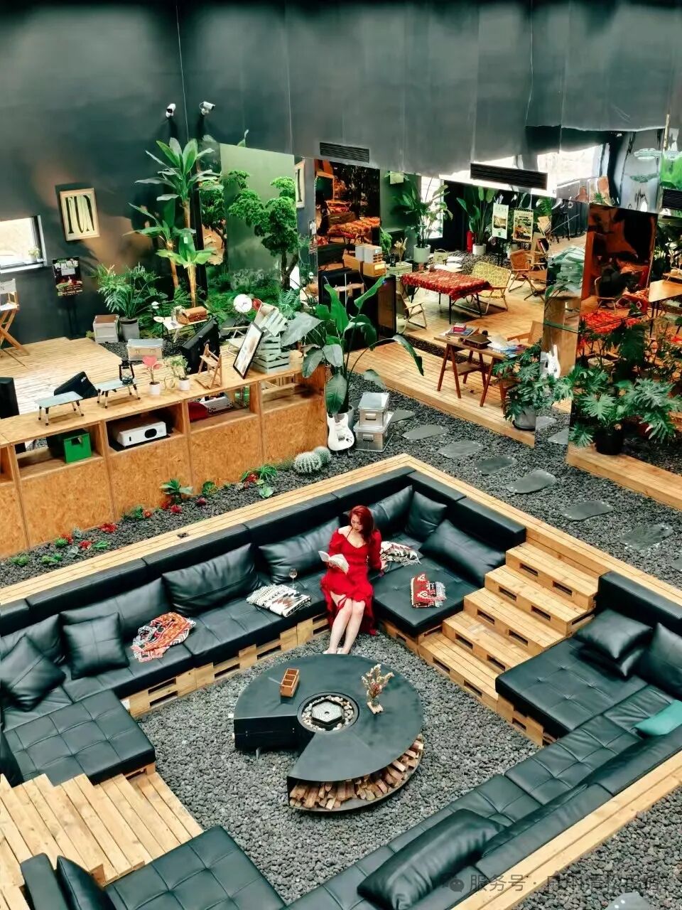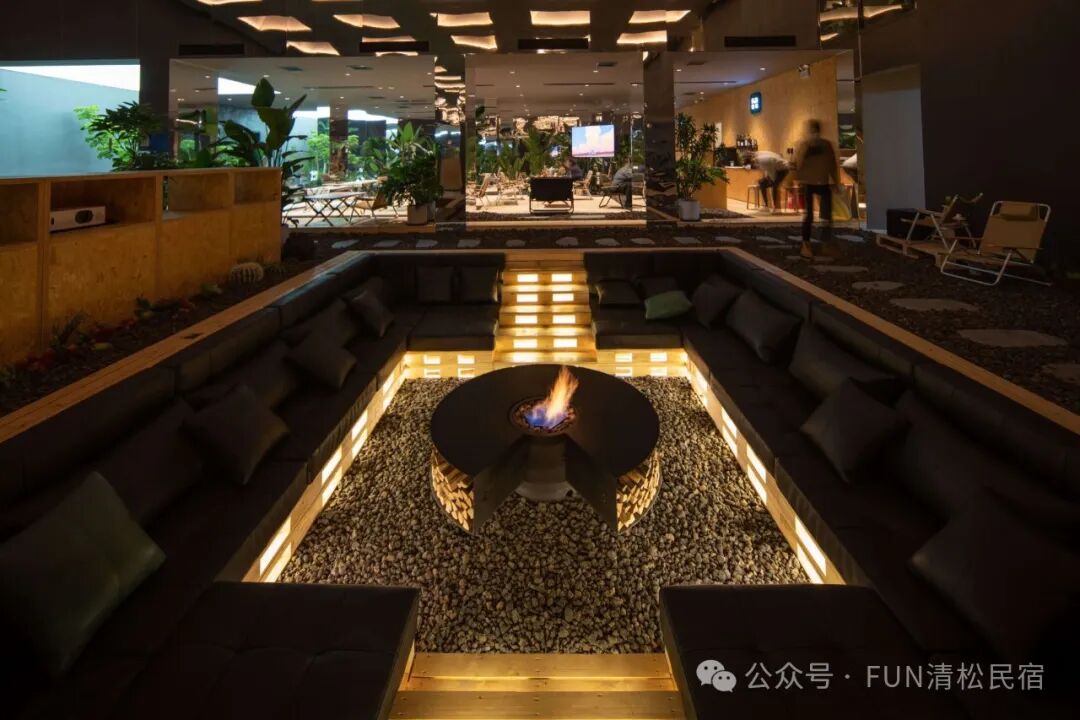 大厅挑高6米,拥有超大幕布观影/k歌,下沉区沙发围坐温暖的篝火。