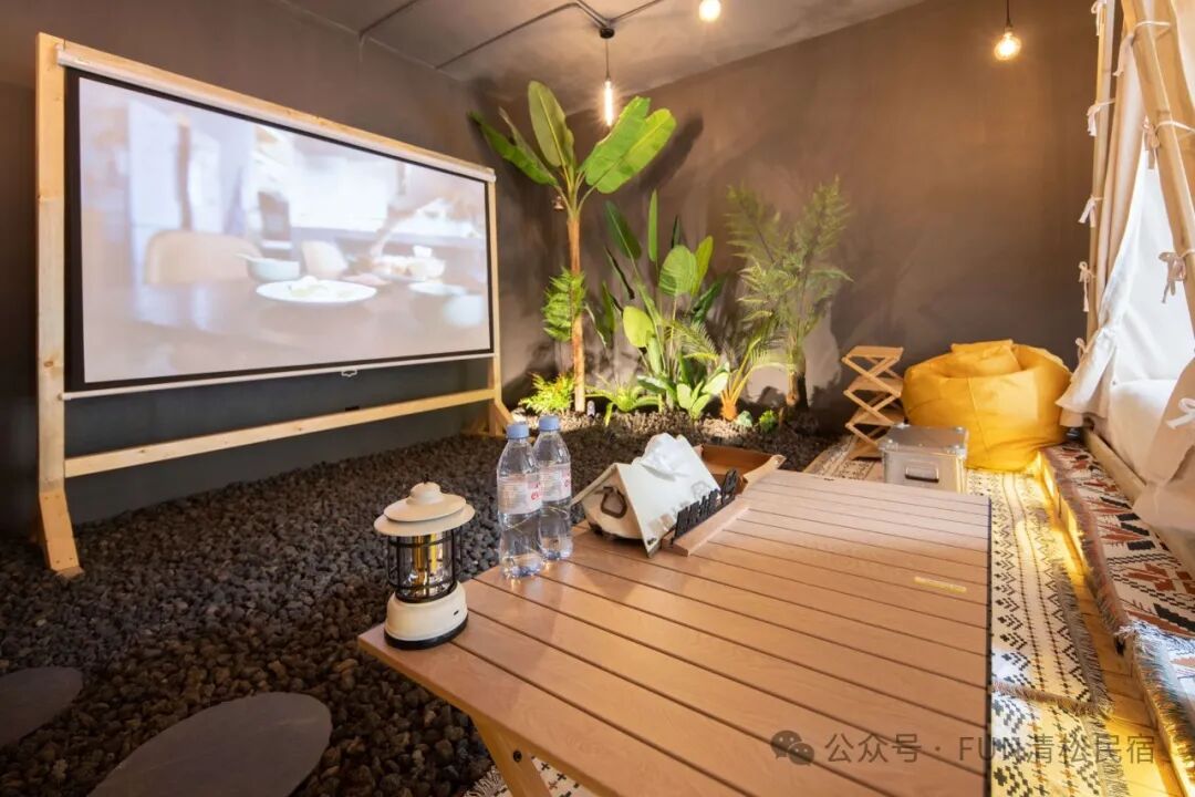 共有6间客房(15-18人),纯木质帐篷搭配高档舒适布草,每个房间都配备投影和幕布。当阳光洒落在纯白的被褥上,每一根发丝都充分享受阳光带来的舒适感。
