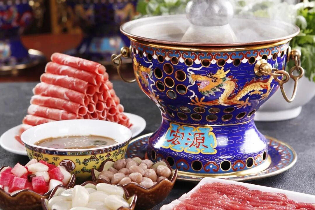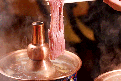 在景泰蓝铜锅的沸腾中捞出鲜嫩肉片