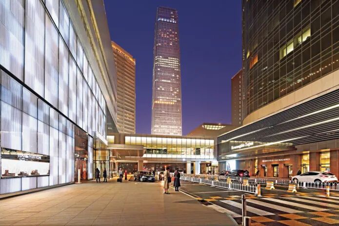 人潮涌动的CBD与雕栏玉砌的酒店形成对比