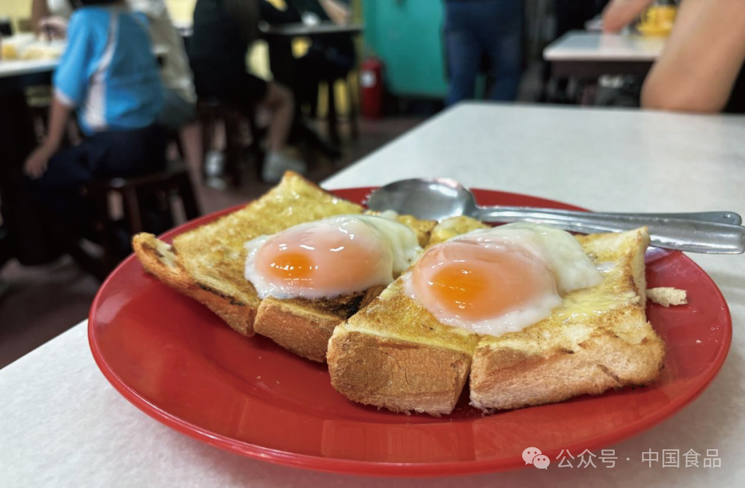 我先将牛油涂抹到刚刚出炉的面包片上,热乎乎的面包加速着油脂的融化,不多时便顺着空隙渗入其间,再来一层厚厚的加央酱,一口咬下去,浓郁的味道让人不禁联想起巴生港的海风。