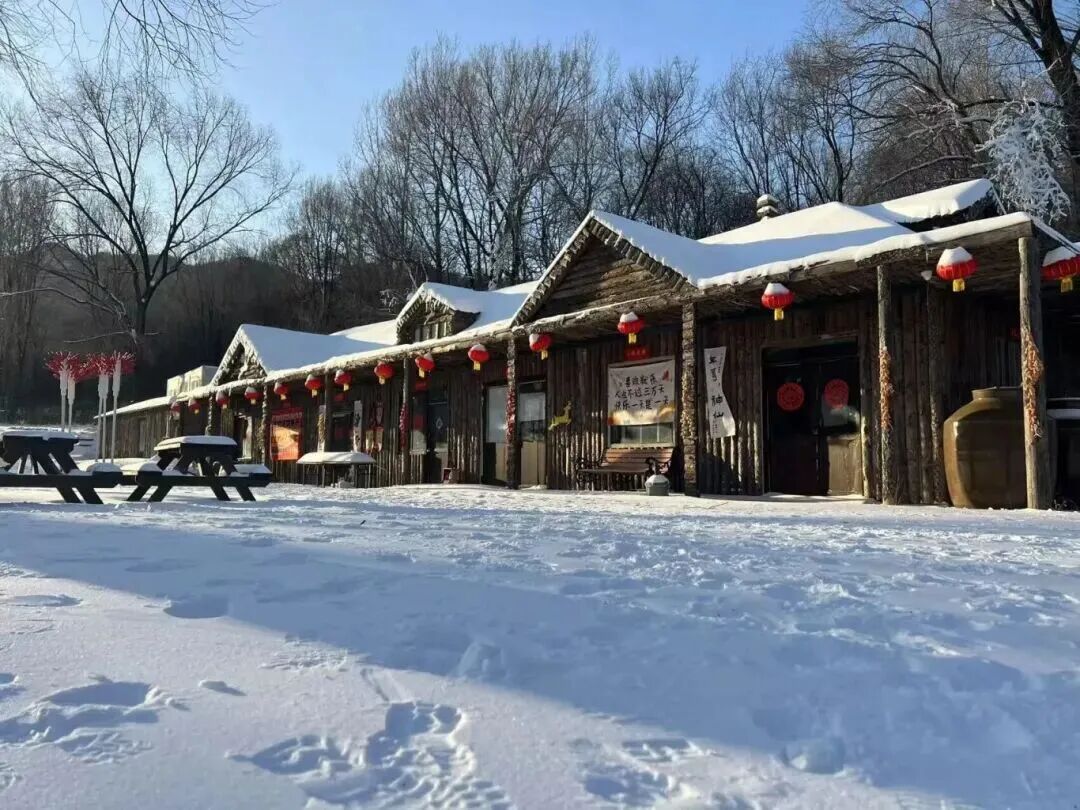 东北木屋式雪屋同步亮相,原木质感搭配皑皑白雪,东北氛围感拉满。