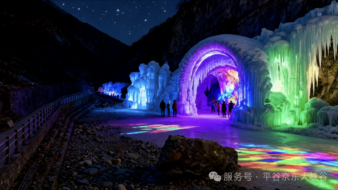 2026年1月1日京东大峡谷正式启幕“与子·山谷冰瀑艺术季”。