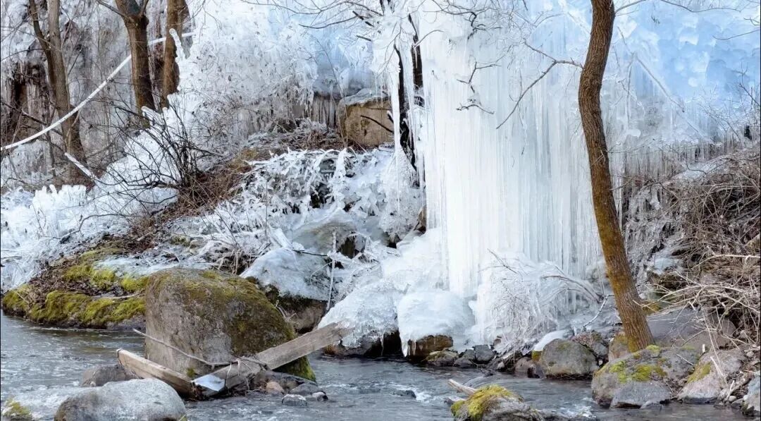 冰瀑从山崖边缘高悬而下,化作银白的帷幕,给人带来冷峻而又美丽的视觉享受,又与峡谷、林木相互映衬,塑造天然冰雕长廊,穿行在这片冰雪秘境,欣赏每一处凝冻的波纹,聆听它们静静述说冬日的静谧与纯粹。这个冬天,来神泉峡,邂逅一场冰瀑为笔、山峡为卷的视觉诗篇吧!