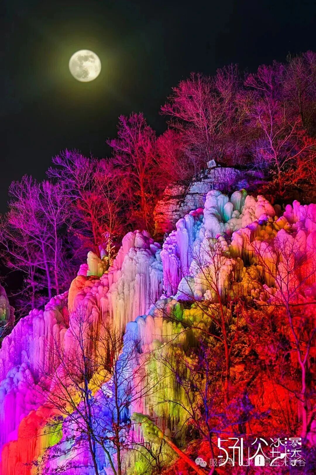 百米冰瀑如银河垂落,灯光为笔,勾勒出晶莹剔透的冰雪宇宙,行走其间,仿佛步入被时间冻结的秘境,光在冰中流转,冰在光里呼吸。