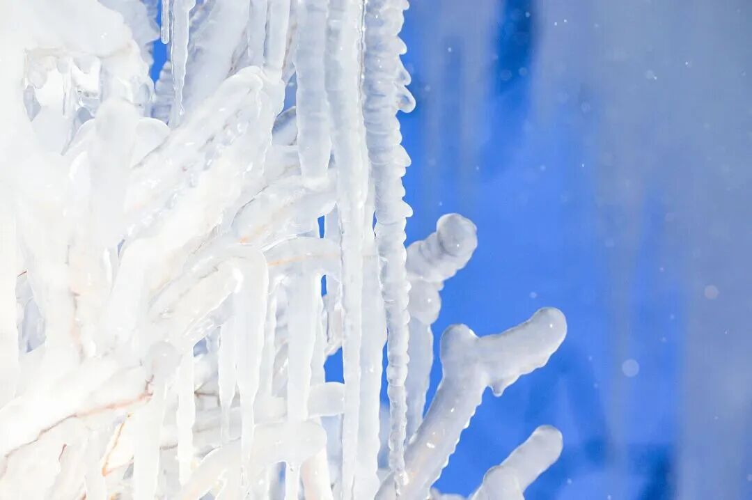 那些错落的冰棱,有的如利剑直指苍穹,有的像凝固的浪花,在崖边勾勒出灵动的弧线,云瀑沟最神奇之处在于它的“活冰瀑”,在一些冰瀑后面仍能听见微弱的水流声,看到冰层下溪水仍在流动。