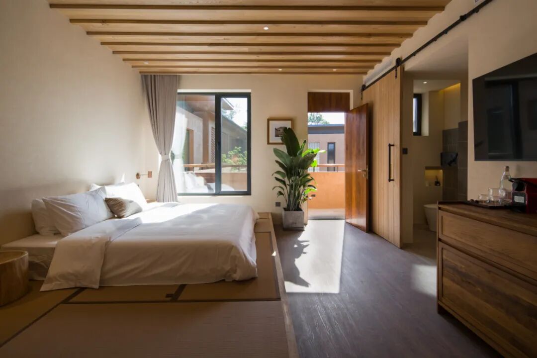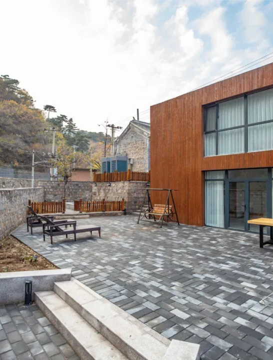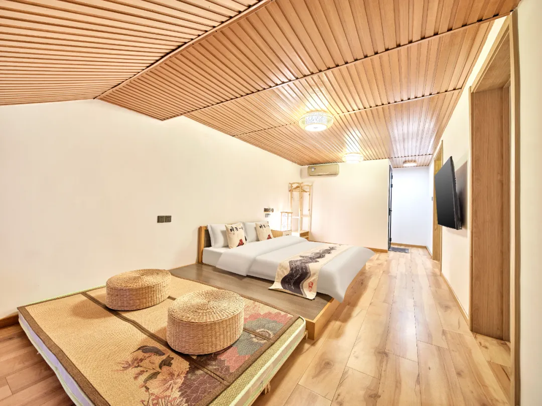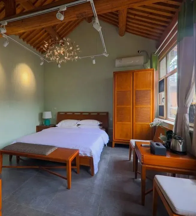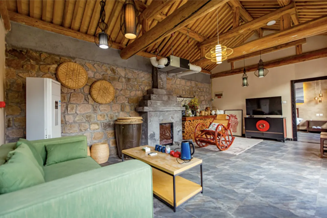 民宿依山而建,保留古老木质横梁结构,提供山景住宿体验,展现出一片宁静而迷人的景致。这里,自然环境优美如画,配套设施一应俱全,是远离尘嚣、放松身心的静谧之地。