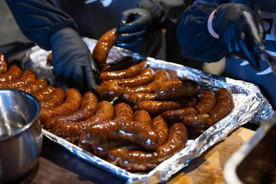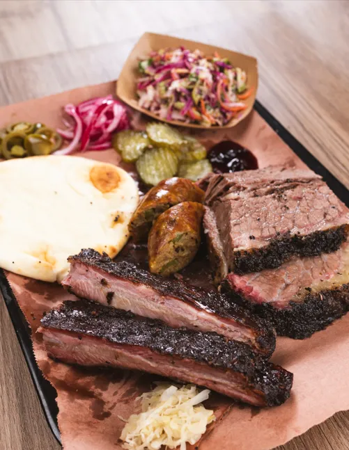 严方院黑山烤房份量十足的烤肉,撒上胡椒粉与浓郁酱汁,咬一口鲜嫩多汁,随即空气中弥散果木烤的香气,再搭配蔬菜沙拉、面包、香烤土豆等食材,满足您的味蕾。