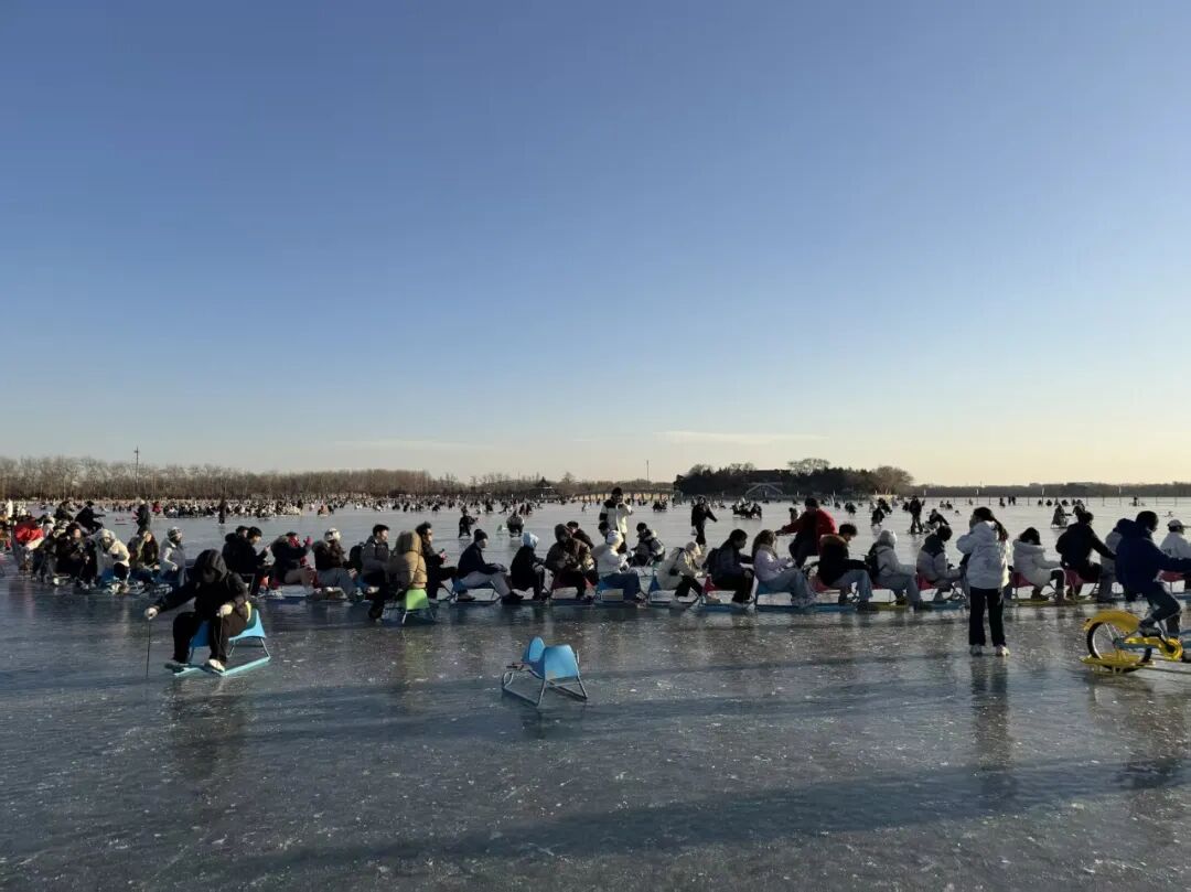 现场配备单人冰车、双人冰车及单人冰上自行车三类传统冰上设施,供游客选择。辽阔的天然冰面与万寿山、佛香阁等古典建筑遥相呼应,形成独具韵味的皇家园林冰雪画卷,让游客在滑行嬉戏间,既能感受传统冰上项目的乐趣,亦能领略冬日户外运动的别样生机。